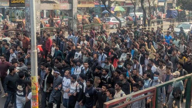 সায়েন্সল্যাবে সাত কলেজ শিক্ষার্থীদের সড়ক অবরোধ, যান চলাচল বন্ধ