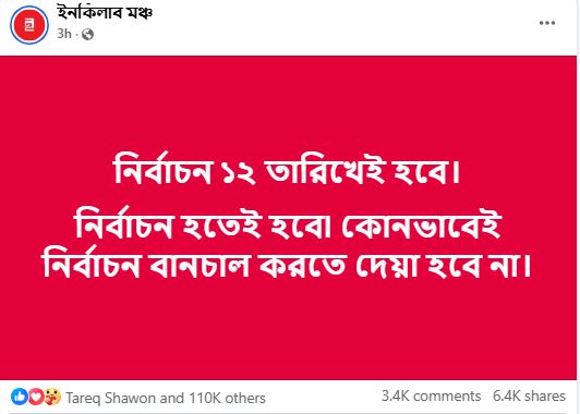 নির্বাচন ১২ তারিখেই হবে: ইনকিলাব মঞ্চ