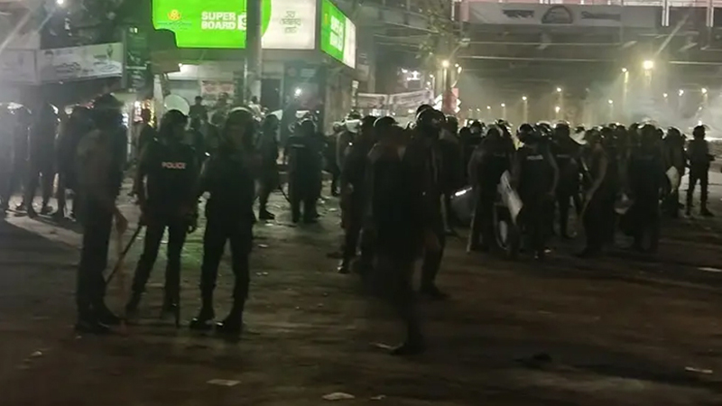 এদিকে সন্ধ্যা সাড়ে সাতটার দিকে শাহবাগ থেকে আন্দোলনকারীদের একাংশ হোটেল ইন্টারকন্টিনেন্টালের দিকে অগ্রসর হলে বাধা দেয় পুলিশ। পরে তাদের ছত্রভঙ্গ করতে লাঠিচার্জ ও সাউন্ড গ্রেনেড নিক্ষেপ করা হয়। একপর্যায়ে আন্দোলনকারীরা ছত্রভঙ্গ হয়ে যায়। এ সময় ঢাকা-৮ আসনের স্বতন্ত্র প্রার্থী মহিউদ্দিন রনিসহ অন্তত ২০ জন আহত হন। তাদের ঢাকা মেডিকেল কলেজ হাসপাতালে প্রাথমিক চিকিৎসা দেয়া হয় বলে জানা গেছে।